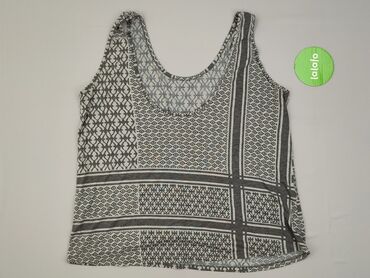 Top damski bez rękawów, rozmiar XL. - Krój: lekko dopasowany, bez rękawów, dekolt w kształcie litery V z przodu i z tyłu. - Wzór: geometryczny/abstrakcyjny, kratka ze skreśleniami w kolorach czern...