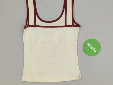 Damska bluzka/top na ramiączkach w kolorze ecru z czarną lamówką. - Krój lekko rozszerzany, swobodnie opadający - Cienkie ramiączka, dekolt w kształcie litery V - Kontrastowe, czarne wykończenia pr...