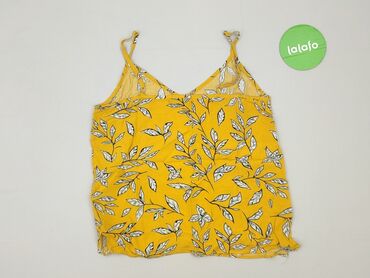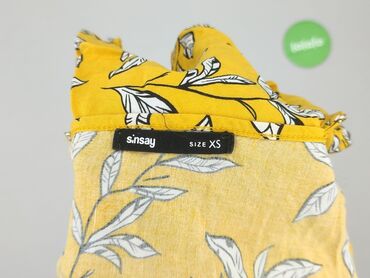 Przewiewny, kolorowy top świetny do szortów, jeansów i spódnic na ciepłe dni. Marka: Sinsay. Rozmiar XS. Kolor: intensywny żółty z roślinnym printem.