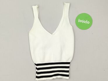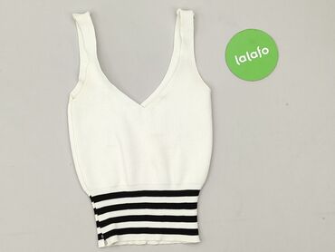 Biały, prążkowany top bez rękawów – damski - Fason: dopasowany, na szerokich ramiączkach, okrągły dekolt - Materiał: elastyczna, miękka dzianina prążkowana (komfortowa, dobrze dopasowuje się do sy...