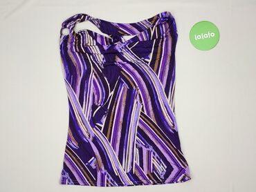 Top damski bez rękawów z lekkiego, półprzezroczystego materiału. Wzór: okręgi w odcieniach granatu, niebieskiego, bieli i złamanej żółci na drobno nakrapianym tle. Krój luźny, przewiewny, idealny n...