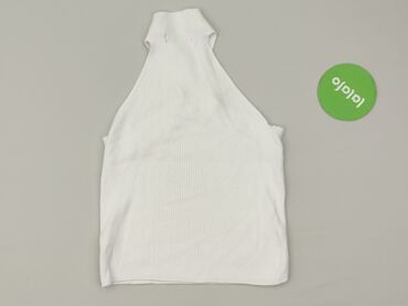 Top damski Primark - Model: krótki crop top na ramiączkach - Kolor: biały/ecru - Fason: dopasowany, prążkowana dzianina - Zapięcie: rząd dekoracyjnych guzików z przodu - Dekolt: łagodnie zaokrąglo...