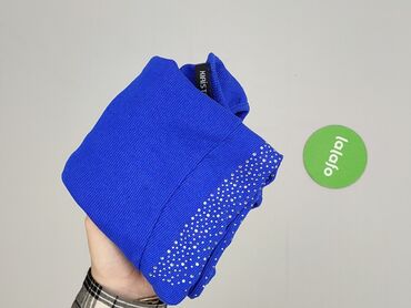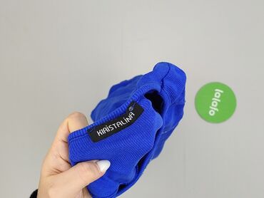 Króp top damski, kolor kobaltowy/niebieski. - Fason: krótki T‑shirt z krótkim rękawem, okrągły dekolt. - Detale: białe, błyszczące lampasy wzdłuż rękawów i po bokach. - Rozmiar z metki: S. - Sk...