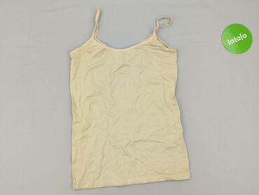 Damski top na ramiączkach w beżowym kolorze, wykonany z prążkowanego materiału. Posiada okrągły dekolt i jest w rozmiarze S. Idealny na co dzień, na lato lub jako element stylizacji warstwowej. Mat...