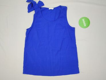 Bluzka damska SinSay, rozmiar S. - Krój: krótki top, dopasowany, z krótkim rękawem - Materiał: cienka, elastyczna siateczka/mesh (lekko prześwitująca) - Wzór: niebieskie tło w stylu tie-dye z biał...