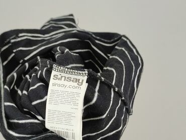 Top w paski Sinsay - Marka: Sinsay - Rozmiar: M (na metce) - Fason: bez rękawów, podkoszulek/tank top z wycięciami pod pachami i okrągłym dekoltem - Wzór: czarno-białe, wąskie, poziome paski - Mat...