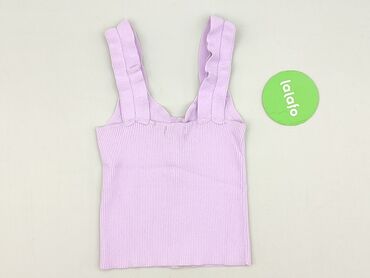 Bluzka damska bez rękawów w kropki - Kolor: jasny lawendowy/fioletowy w białe groszki - Krój: luźny, prosty, bez rękawów; delikatna falbanka na dole - Dekolt: okrągły - Zapięcie: guzik na karku - ...