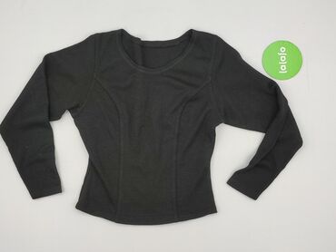 Czarny damski top z długim rękawem, prążkowana dzianina - Fason: dopasowany, lekko skrócony (crop), z profilującymi przeszyciami po bokach - Dekolt: łódkowy/okrągły - Rękawy: długie - Materiał: el...