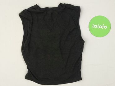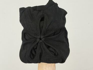 OkrągłyCzarny top bez rękawów z prążkowanej, elastycznej dzianiny. Na przodzie efektowna aplikacja w kształcie kwiatu utworzona z marszczeń i pętelek materiału, zbiegających się w centralnym węźle. Okrągły dekolt, wykończone lamówką pachy i dół. Krój krótki, dopasowany, idealny do high waist: jeansów, spódnic czy szortów. Minimalistyczny, ale z wyrazistym detalem – świetny do stylizacji casual i imprezowych. Kolor: głęboka czerń. Materiał: miękka, rozciągliwa dzianina prążkowana.