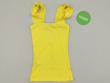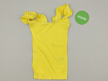 Bluzka damska/top w kolorze intensywnej żółci. - Krój: dopasowany, bez rękawów - Rękawy: krótkie falbanki przy ramionach (volants) - Dekolt: okrągły - Materiał: miękka, cienka dzianina bawełniana/...