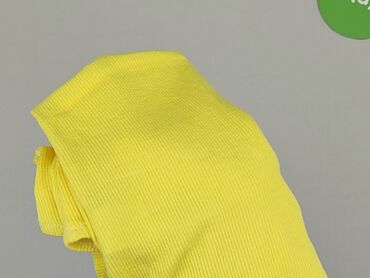 Żółty top na ramiączkach - Krój: krótki top/camisole z cienkimi ramiączkami spaghetti - Kolor: intensywny żółty z białymi lamówkami i dwiema poziomymi białymi paskami z przodu - Dekolt: prosty, le...
