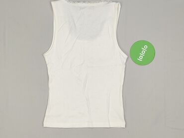 Biała damska koszulka bez rękawów Sinsay - Krój: klasyczny top na ramiączkach z okrągłym dekoltem - Kolor: biały - Rozmiar z metki: L - Skład materiału: 92% poliamid, 8% elastan – elastyczna, gład...