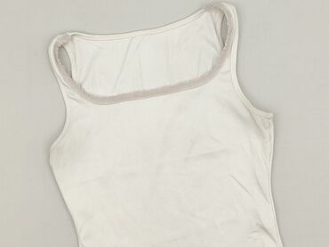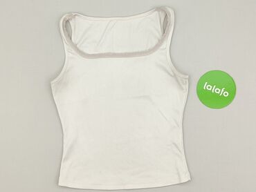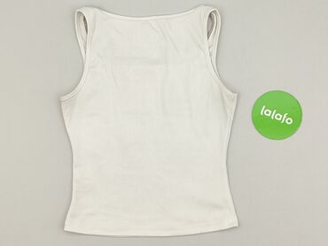 Biała damska koszulka bez rękawów z koronkowym wykończeniem - Typ: top na ramiączkach - Krój: dopasowany, elastyczny prążkowany materiał - Dekolt: w kształcie litery V z przodu - Tył: dekoracyjna,...