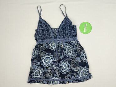 Bluzka damska s.Oliver, rozmiar 36. - Krój: luźny T‑shirt z krótkim rękawem, łódkowy dekolt - Wzór: geometryczny, kolorowe panele – odcienie błękitu, granat, biel oraz pomarańczowy; dekoracyjny pa...