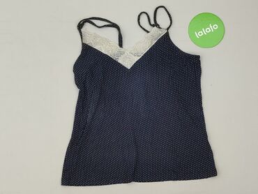 Top damski bez rękawów Reserved YFL - Rozmiar: XS (wg metki) - Kolor: biały w granatowe kropki (groszki) - Krój: prosty, okrągły dekolt, szerokie ramiączka - Materiał: miękka, cienka dzianina bawe...