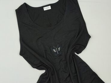 Top damski bez rękawów Frk., rozmiar L - Krój: luźny, oversize, z obniżoną linią boków i zaokrąglonym dołem - Dekolt: okrągły - Wzór: drobne kwiaty – fiolet, pomarańcz, zieleń na czarnym tle - Mat...