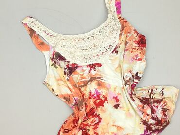 Top damski Sugar 17 – rozmiar M - Krój: bez rękawów, bokserka z wycięciem typu racerback. - Materiał: 100% poliester – lekki, półprzezroczysty, zwiewny. - Wzór/kolor: wielobarwny, akwarelowe pasma...