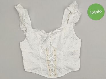 Biały top typu bustier SHEIN - Marka: SHEIN - Rozmiar z metki: S (EU 36 / US 4) - Krój: krótki top/bustier na szerokich ramiączkach - Materiał: ażurowa bawełna z haftem angielskim (broderie), pods...
