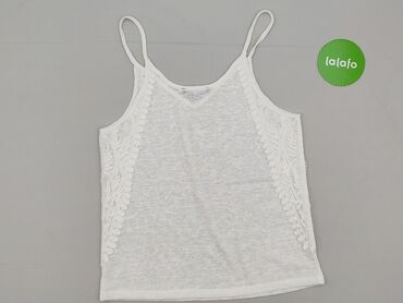 Biała damska koszulka bez rękawów z koronkowym wykończeniem - Typ: top na ramiączkach - Krój: dopasowany, elastyczny prążkowany materiał - Dekolt: w kształcie litery V z przodu - Tył: dekoracyjna,...