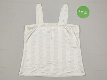 Elegancka damska bluzka bez rękawów z połyskującego, satynowego materiału w kolorze śmietankowej bieli. - Krój: prosty, swobodny, długość do bioder - Dekolt: okrągły - Ramiona: szerokie ramiączka ...