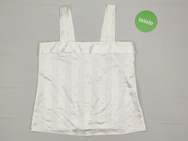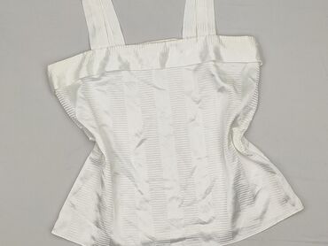 Elegancka damska bluzka bez rękawów z połyskującego, satynowego materiału w kolorze śmietankowej bieli. - Krój: prosty, swobodny, długość do bioder - Dekolt: okrągły - Ramiona: szerokie ramiączka ...Stan: