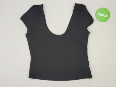 Czarna bluzka H&M z krótkim rękawem - Fason: dopasowany, krótszy top - Dekolt: głęboki w kształcie litery U z przodu i z tyłu - Materiał: 96% poliamid, 4% elastan – gładka, elastyczna dzianina - M...