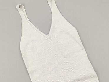 Biały, prążkowany top bez rękawów – damski - Fason: dopasowany, na szerokich ramiączkach, okrągły dekolt - Materiał: elastyczna, miękka dzianina prążkowana (komfortowa, dobrze dopasowuje się do sy...