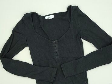 Czarny, prążkowany crop top z długim rękawem – SHEIN - Fason: dopasowany, krótki (crop), z zaokrąglonym dekoltem - Rękawy: długie, elastyczne - Materiał: dzianina prążkowana, rozciągliwa i miękka ...
