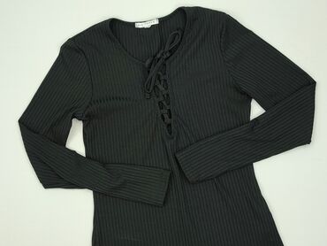 Czarny prążkowany top/bluzka z długim rękawem - Kolor: Black (czarny) - Rozmiar: S - Materiał: 95% wiskoza, 5% elastan – miękki, elastyczny, dopasowujący się do sylwetki - Fason: obcisły, z długim...
