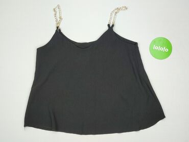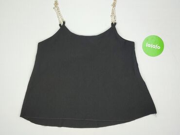 Czarny top na ramiączkach z ozdobnymi łańcuszkami - Fason: dopasowany, z dekoltem w serek z przodu i z tyłu - Ramiączka: podwójne, dekoracyjne, w formie złotych/metalicznych ogniw - Materiał: dzia...Stan: