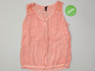 Bluzka damska Orsay bez rękawów - Kolor: jasny pudrowy róż/nude - Krój: bez rękawów, okrągły dekolt z przodu - Tył: gładka dzianina z ozdobnym łezkowym wycięciem pod karkiem - Przód: ażurowa, koro...Top damski Orsay, rozmiar M.