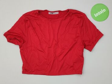 Czerwony top damski FB Sister - Rozmiar: XS (z metki) - Krój: krótki/crop, z krótkim rękawem - Dekolt: okrągły z ozdobną aplikacją w kształcie litery V z czarnej taśmy/wstawki z przodu - Materiał:...