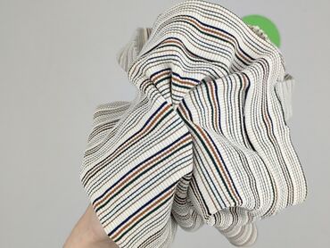 - Wzór: drobne, poziome paski w odcieniach zieleni, granatu, karmelu i czerni na kremowym tle