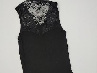 Top/koszulka na ramiączkach Reserved, damska - Kolor: czarny - Rozmiar z metki: S - Fason: dopasowany, prążkowany materiał - Dekolt i ramiączka wykończone koronką - Miękka, elastyczna dzianina – w...