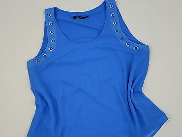 Bluzka damska bez rękawów w intensywnym kobaltowym kolorze. - Luźny, przewiewny krój - Przód z gładkiej, miękkiej tkaniny - Tył z lekkiej, półprzezroczystej siateczki zachodzącej warstwowo (efekt ...