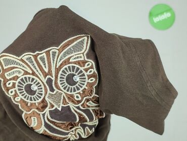 - Przód: duża aplikacja sowy – połączenie haftu w odcieniach beżu i brązu z naszywaną, lekko błyszczącą tkaniną; oczy sowy zdobione małymi przezroczystymi cekinami