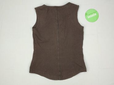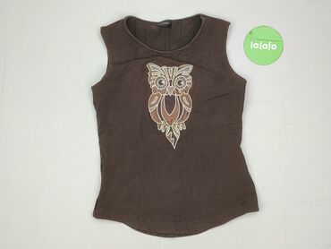 Brązowa damska koszulka bez rękawów - Krój: luźny top bez rękawów, okrągły dekolt - Kolor: ciepły brąz - Detale: haftowane kwiaty z drobnymi koralikami w kolorze pomarańczowym z przodu, krótkie ro...