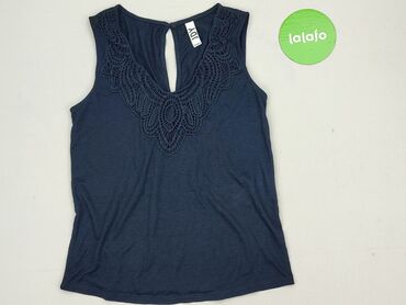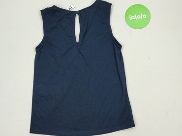 Top bez rękawów damski - Kolor: niebieski jeansowy/morski - Fason: prosty, lekko luźny, bez zapięcia - Dekolt: w kształcie litery V z krótką stójką - Materiał: 100% poliester (metka na zdjęciu) - ...