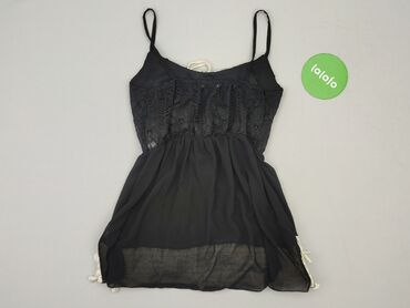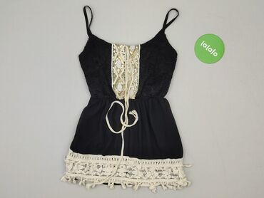 Bluzka damska MiLady, made in Italy - Kolor: czarny - Krój: bez rękawów, z krótką falbanką na ramionach - Dekolt: głęboki V z ozdobną koronkową lamówką; z przodu troczki do lekkiego związania - Ty...Stan: