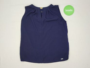 Bluzka damska MOHITO Collection - Krój: bez rękawów, z ozdobnym, krzyżowanym dekoltem na ramionach (asymetryczne paski materiału tworzą „X”). - Wzór: granat w białe, poziome paski – styl marynisty...Stan: