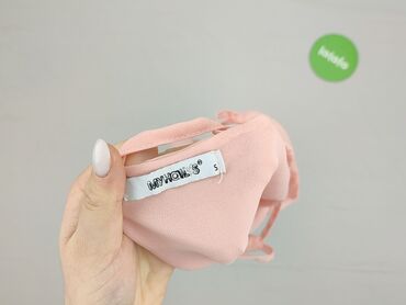Top damski Mohito, rozmiar S. - Krój: wiązany na szyi (halter), krótki, dopasowany. - Kolor: jasny pudrowy róż. - Tkanina: delikatny tiul/siateczka z licznymi falbanami/volanami na całej powierzchn...