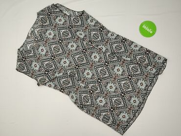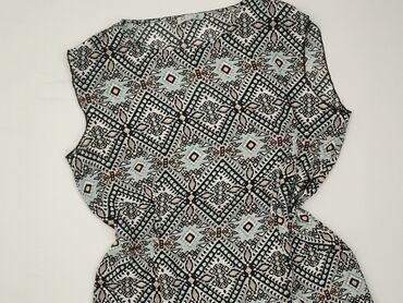 Top damski bez rękawów z lekkiego, półprzezroczystego materiału. Wzór: okręgi w odcieniach granatu, niebieskiego, bieli i złamanej żółci na drobno nakrapianym tle. Krój luźny, przewiewny, idealny n...Stan: