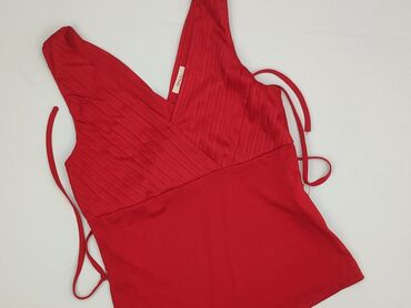 Czerwony top damski Even&Odd - Krój: dopasowany, krótki top - Dekolt: kopertowy/zakładany, delikatnie drapowany z przodu - Rękaw: krótki - Materiał: 95% bawełna, 5% elastan – miękki, elastyczny i ...