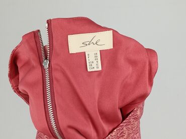 OkrągłyTop damski marki She w kolorze koralowym z beżowym wzorem. Charakteryzuje się okrągłym dekoltem oraz zapięciem na suwak z tyłu, co ułatwia zakładanie. Wykonany z poliestru, z podszewką, zapewniającą komfort noszenia. Idealny do stworzenia eleganckich stylizacji na co dzień lub specjalne okazje.