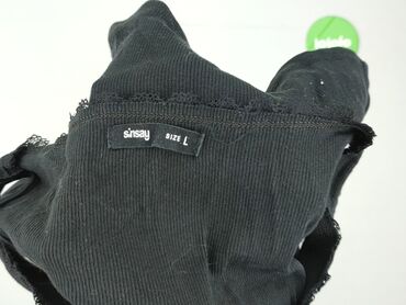Czarny top/braletka Sinsay - Marka: Sinsay - Rozmiar: L (etykieta na zdjęciu) - Krój: krótki top na szerokich ramiączkach - Dekolt: zaokrąglony - Materiał: prążkowana, elastyczna dzianina zapewnia...