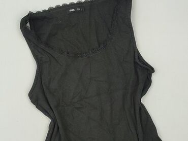 Czarny top damski Sinsay - Krój: dopasowany, bez rękawów - Dekolt: kwadratowy - Rozmiar: S (z metki) - Materiał: 94% poliamid, 6% elastan – elastyczna, gładka dzianina - Kolor: czarny - Długość: k...