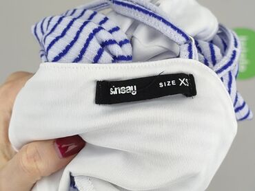 Top/singlet Sinsay – rozmiar XS - Fason: bezrękawnik z szerokimi wycięciami pod pachami, okrągły dekolt - Wzór: poziome paski czarno‑białe - Materiał: elastyczna, prążkowana dzianina (komfortowa, ...