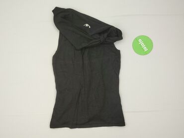 Top damski LIMITED EDITION – czarny, połyskujący - Krój: bez rękawów, prosty, lekko dopasowany. - Detale: marszczone wstawki przy wycięciach na ramiona, okrągły dekolt. - Tył: łezka zapinana na gu...