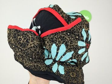 - Aplikacje: duże turkusowe kwiaty z haftowanymi czerwonymi środkami z przodu; z tyłu efektowny roślinno-ptasi motyw w złocie