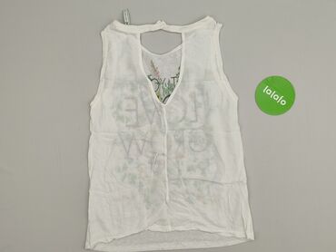 Top damski Stradivarius - Model: bez rękawów, okrągły dekolt - Kolor: intensywna żółć - Wzór: drobne białe kwiaty na całej powierzchni - Tkanina: elastyczna faktura „crinkle/szmizowany” materiał -...